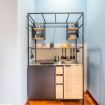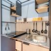 La cucina, piccola ma equipaggiata con tutti gli elettrodomestici, ha due piastre a induzione, macchina del caffe Nespresso, bollitore e microonde.