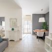 Lo spazio è comodo e luminoso, e si sviluppa attorno ad un soggiorno ampio con divano letto, WIFI, TV smart, tavolo da pranzo per 6 persone e cucina equipaggiata di tutti gli elettrodomestici indispensabili come forno a microonde, piastre a induzione, forno elettrico, bollitore e macchina del caffe tipo NESPRESSO.